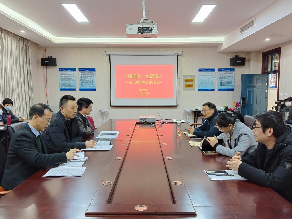 会上,权太举书记首先传达了学校党委关于《河南牧业经济学院深入整治教育领域群众身边腐败和不正之风纠治教师师德失范问题专项工作方案》的文件要求,并通报了近期发生在学校的四起典型案例。权书记向大会作了《以案促改 立德树人——强化师德师风建设专题会议》的专题报告,强调近期通报的典型案例尤其是发生在身边的案例,发人深思,有很强的警示教育意义,广大党员干部、全院教师都要以案为鉴,强化对党纪法规的学习教育,时刻牢记将教书育人与自我修养相结合。