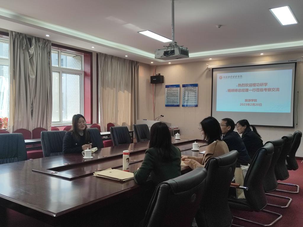2023年220日,河南橙功研学旅行服务有限公司总经理杨婷婷女士来开元官网洽谈校企合作事宜。开元集团网站副院长王中雨、旅游管理教研室主任甄莎博士和教师代表参加了座谈交流,座谈会由王中雨院长主持。