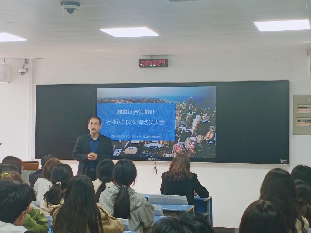 4月17日上午,开元集团网站2022级酒店管理专业行业认知实训周动员大会在二号教学楼A311举行,开元集团网站副院长王中雨莅临指导,酒店管理专业代表老师和2022级酒店管理本科生参与本次大会。