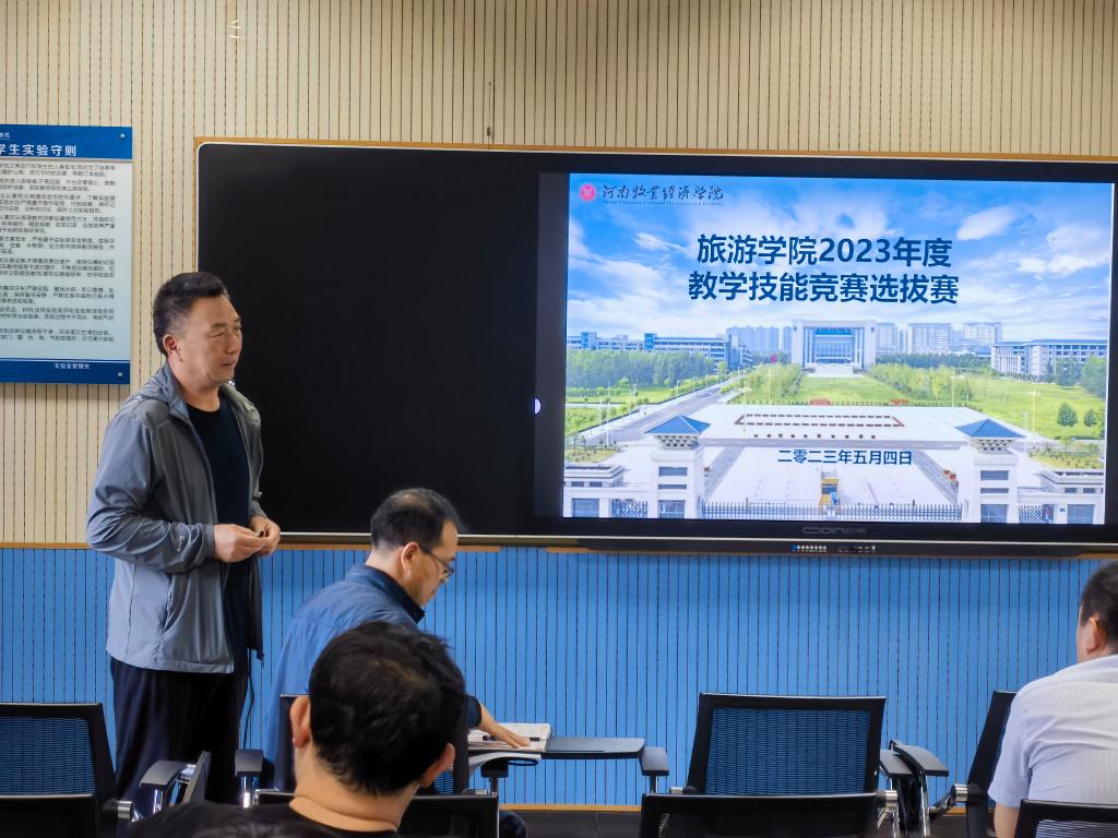 5月4日下午14:30,开元集团网站于C617旅游模拟实训室举行2023 年度教师教学技能暨课堂教学创新大赛选拔赛,经过教师个人自愿报名和教研室遴选,7名专业教师参加了本次比赛,学院组织9名高职称高水平评委老师对各参赛老师依次进行了无记名打分评定和总结点评。学院全体教师全程参与并观摩了本次大赛,比赛由王中雨副院长主持,权太举书记出席并进行总结讲话。