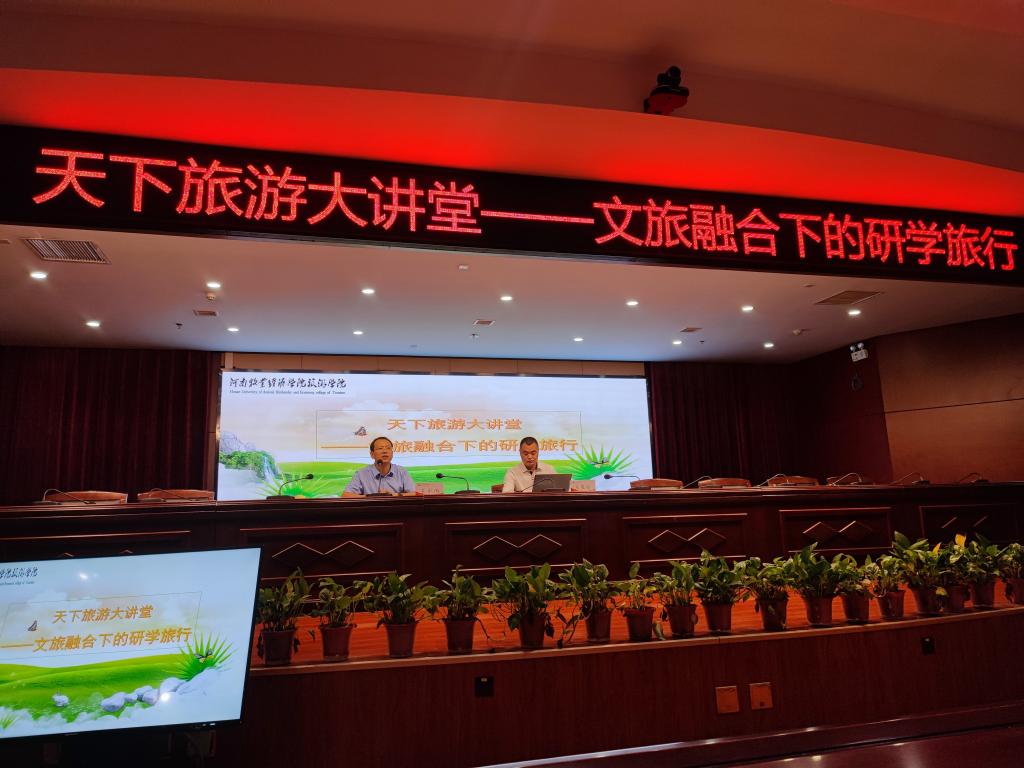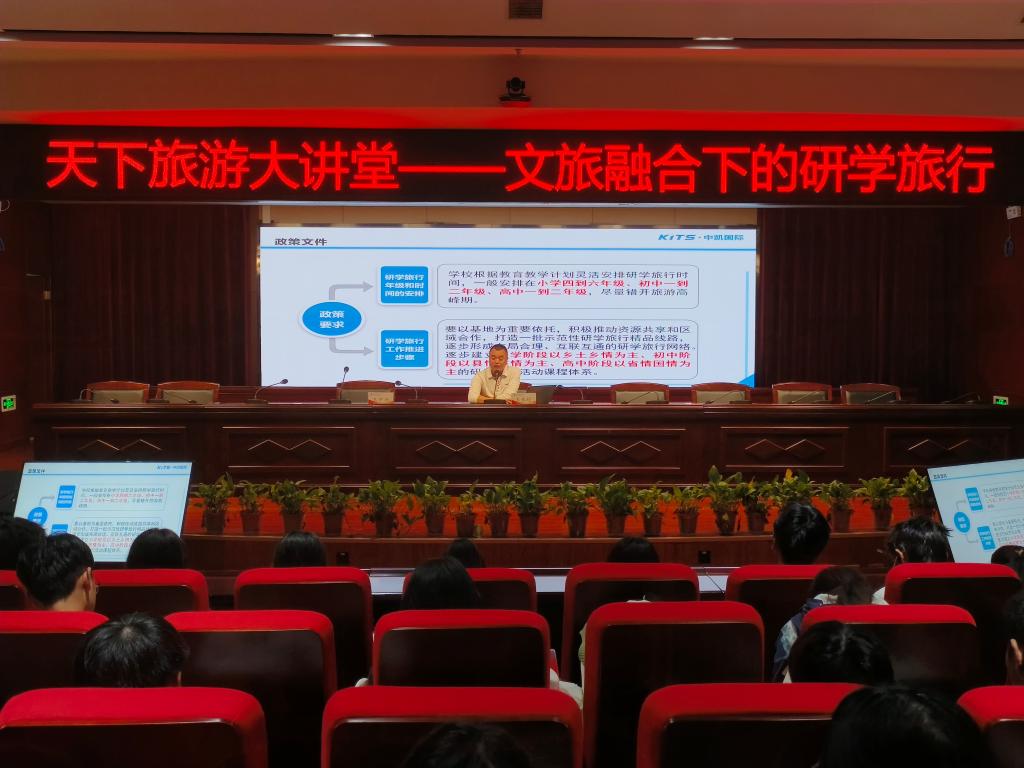 为培养学生的职业认同感,进一步了解研学旅行发展的前沿动态,9月27日下午,开元官网特邀北京中凯国际研学旅行股份有限公司董事长、中国旅行社协会研学旅行分会副会长、开元官网优秀校友王亚超,为开元官网师生带来一场生动详实的文旅盛筵——文旅融合下的研学旅行。开元集团网站副院长王中雨出席本次讲座,讲座由王中雨副院长主持,各教研室老师及旅游管理专业学生近200人聆听本次讲座,讲座在龙子湖校区图书馆报告厅举行。