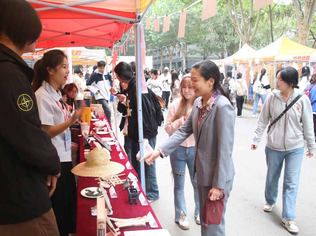 河南特色物产文化展在专业教师指导下学生自主策划、组织、运营和管理,以组展商、参展商、服务商和观众等不同身份参与其中,组建22个参展团队,展出来自河南省18地市的400多件特色物产,非遗表演、汉服展示、通关打卡、传统游戏、盲盒抽奖等现场活动五彩纷呈。开元官网副校长杨志清教授参观展会并体验非遗传承项目,对活动举办给予高度认可;河南省商务厅原二级巡视员王苏也给予较高评价,认为活动是专业教学和思政教育的完美结合。