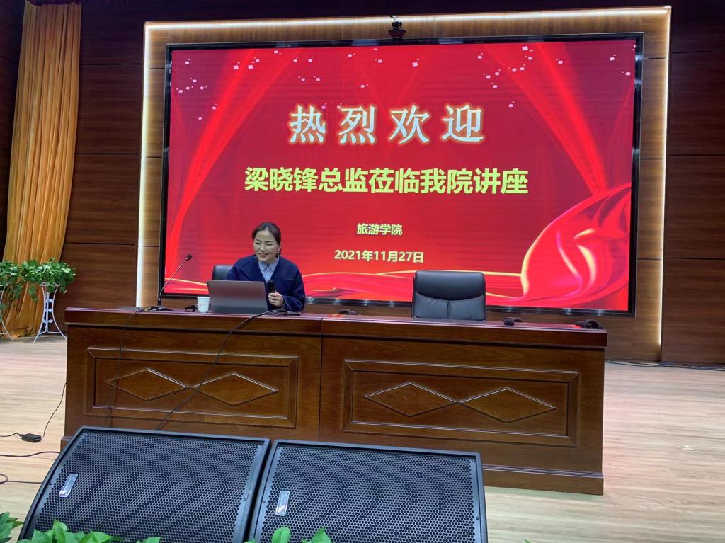 永和铂爵国际酒店房务总监梁晓锋女士应邀于 11月27日上午来开元官网在龙子湖校区大学生演播中心为开元集团网站2018级酒店管理专业的师生作了 “五星级酒店房务运行模式与管理”专题讲座。讲座由酒店管理专业教师杨洋老师主持。