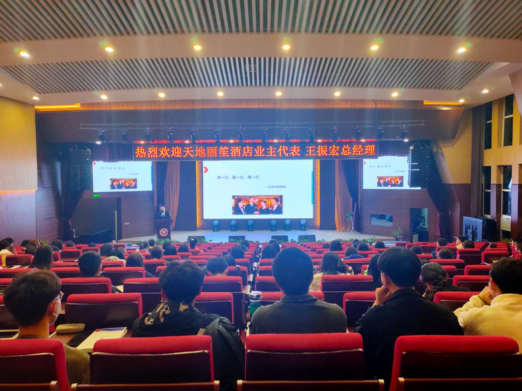 王振宏总经理在介绍了酒店成长发展的职业变化经历后,从职业经理人应具备的四种能力、三种素质以及一种态度三个方面详细地讲解了酒店职业经理人应有的素养。互动交流环节,王总经理谈到了疫情常态化形式下酒店行业发展前景、酒店从业人员素质要求和人才流动、酒店内部管理层男女性别比例问题。王总经理在分享时提到,酒店从业者想要得到更好发展,在大学期间掌握好基础知识至关重要。要注重积累实践经验,转变心态积极迎接挑战,不断提升学习能力和应对问题的能力,并就以后大家对酒店行业工作方向的选择给出了中肯建议。