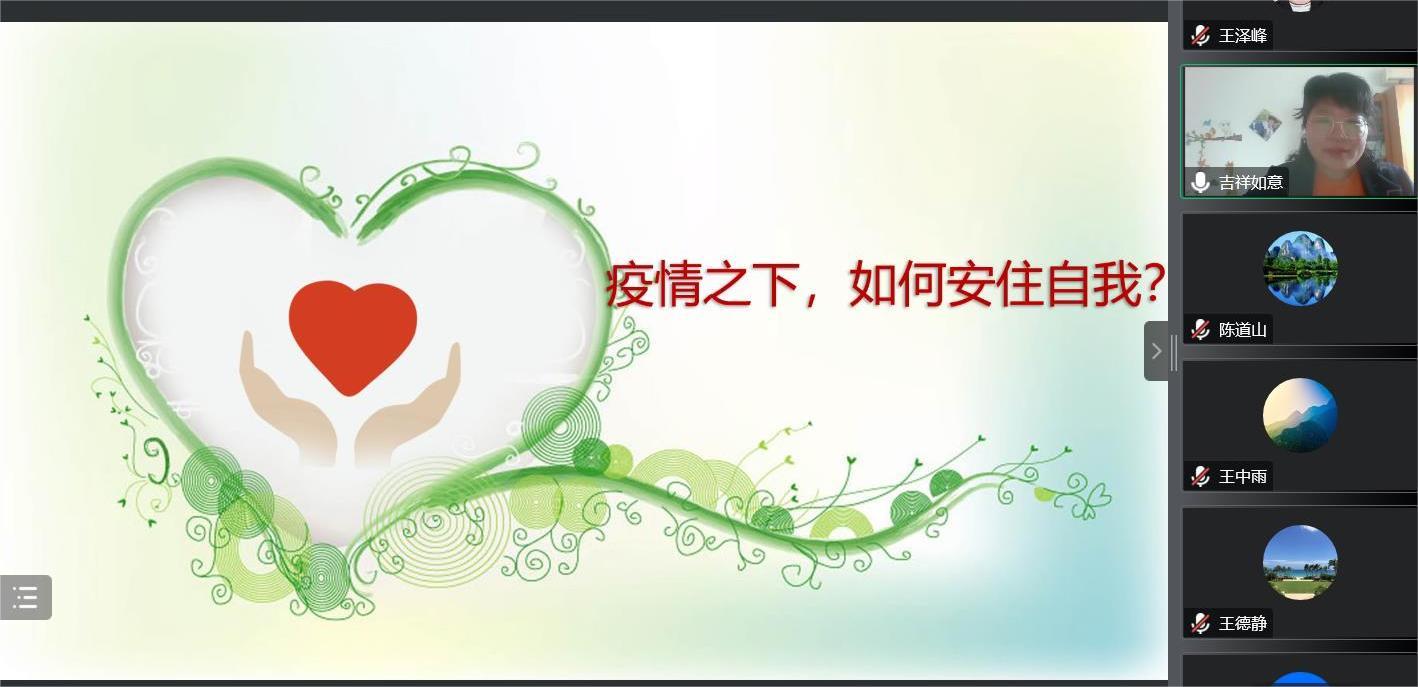 11月3日下午,受开元官网邀请,国家二级心理咨询师、河南省心理咨询师协会平台特约专家、开元官网大学生心理健康教育中心心理健康教研室主任董晓倩为开元官网教师做“疫情之下,如何安住自我”主题讲座。全院教师参与了本次线上讲座,讲座由副院长陈道山主持。