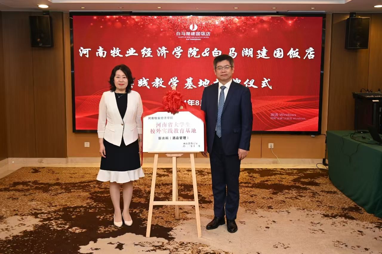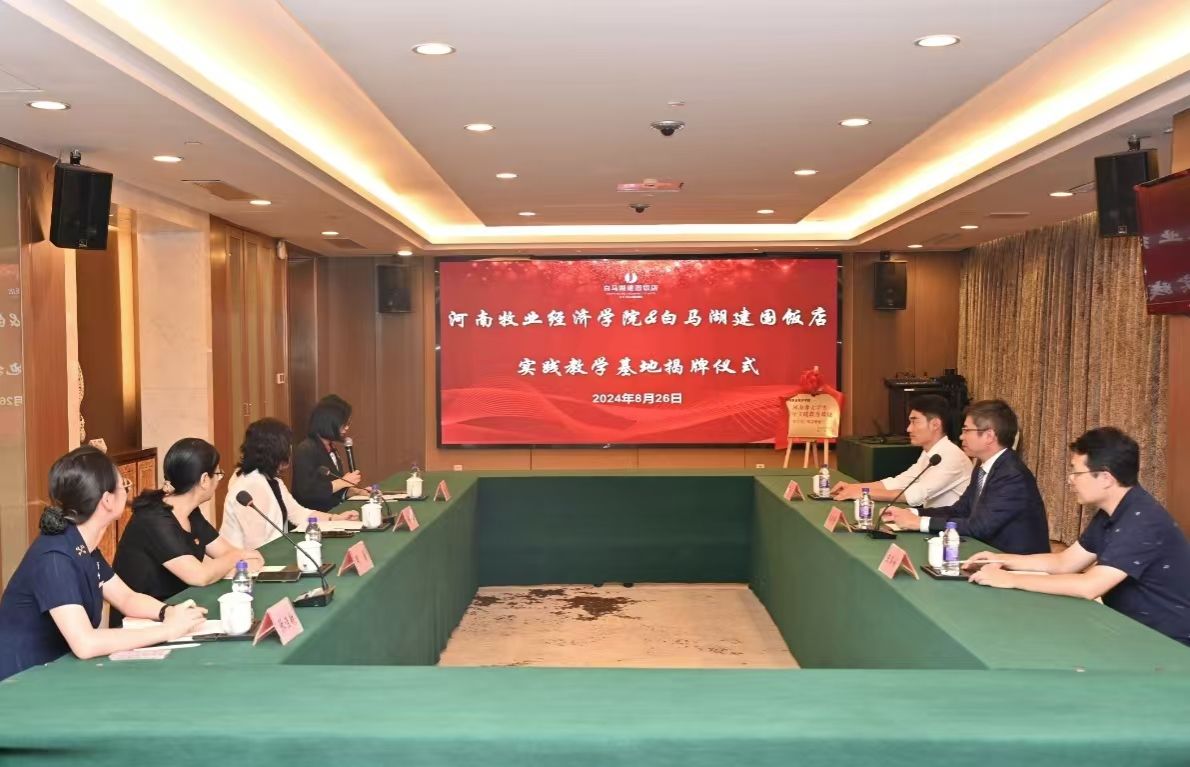 仪式伊始,总经理张静茹介绍了杭州白马湖建国饭店的发展历程,历经12年获得行业各界认可,承办超1万场大型会议活动,荣获优秀企业管理品牌、优秀饭店、先进单位等奖项。企业将充分发挥专业优势,有一套完整的人力资源管理体系,深度考虑学生职业发展路径,从而打造优质的实践平台,让企业、学校、社会共同受益。随后,开元官网院长王德静介绍了河南牧业经济学院开元集团网站的概况,是目前河南省办学历史最长,在校生规模最大,专业设置最为齐全的本科层次开元集团网站。“河南省旅游业高素质应用型管理人才的培养基地”。王院长表示杭州是座美丽的城市,这座城市和中原大地有着深厚的历史渊源,望校企双方在今后的合作中共同进步,培养出更多优秀人才,并再次对今天出席仪式的领导与工作人员表示感谢。