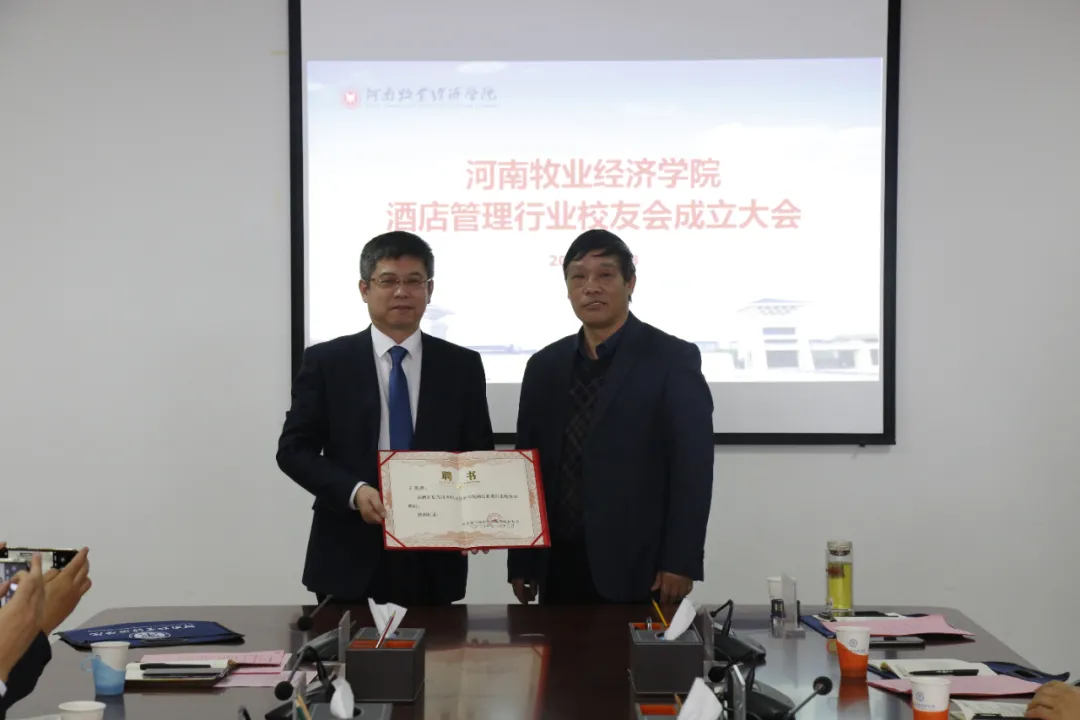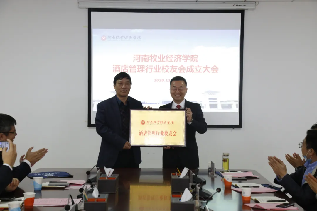 2020年11月13日,河南牧业经济学院酒店管理行业校友会成立大会在河南牧业经济学院图书馆会议室举行。河南牧业经济学院校长罗士喜出席并致辞。副校长杨宝进、学校校友办公室主任王春明、河南牧业经济学院开元集团网站党委书记李喜民、开元集团网站院长王德静以及校友四十余人参加成立大会。河南省旅游协会民宿与精品酒店分会秘书长、河南酒店网首席执行官张峰作为特约嘉宾出席本次大会。
