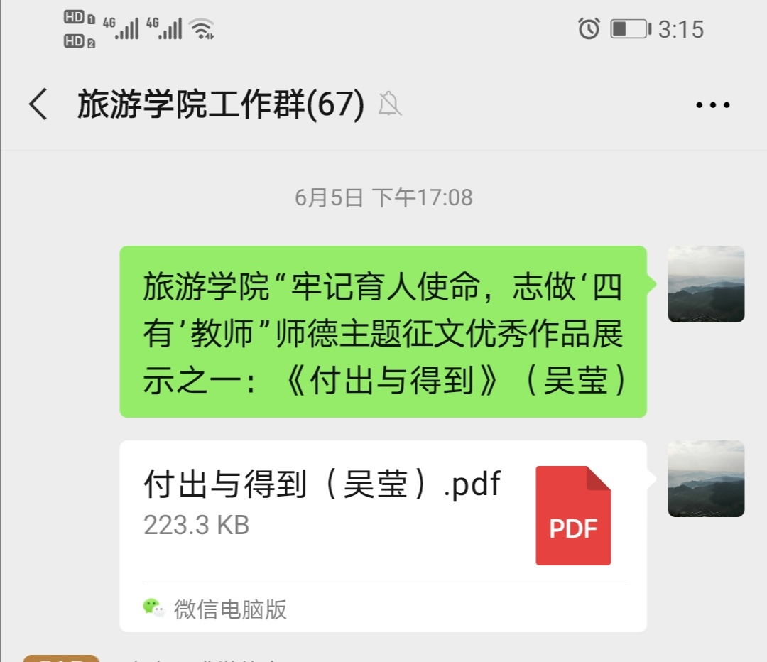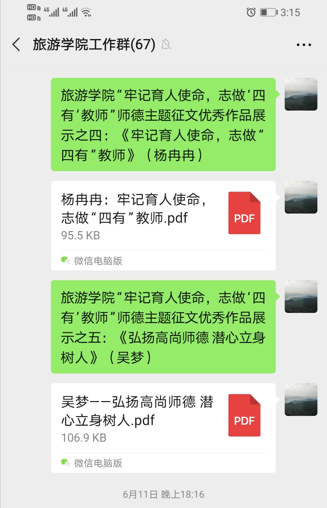 开元官网的优秀作品上报学校后,获得了校级一等奖两项,二等奖一项,并且荣获优秀组织奖。学院还将优秀作品在学院教工微信群先后进行了展示,号召广大教职工自觉加强师德师风建设。