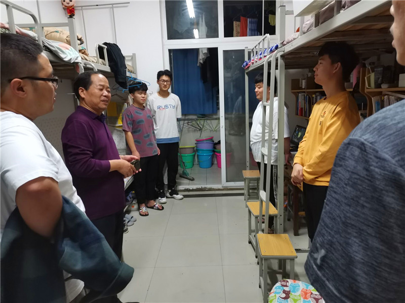 在走访宿舍的过程中,李书记对同学们的生活、学习和未来就业三个方面进行了解,深入询问同学们的住宿、学习生活情况以及对宿舍管理工作的意见。通过与同学们亲切交谈,李书记详细询问他们的生活状况和作息制度,了解学生思想动态,对学生宿舍环境卫生、宿舍文化建设进行现场指导,并要求同学们在日常生活中,务必注意财物安全、用水用电安全、人身安全,加强内务清洁管理,保持宿舍环境卫生。同时李书记鼓励同学们尽快适应新环境,在认真学好专业知识的同时,多阅读、善思考,积极拓宽视野,加强身体锻炼,为今后的学习和工作打下坚实的基础。