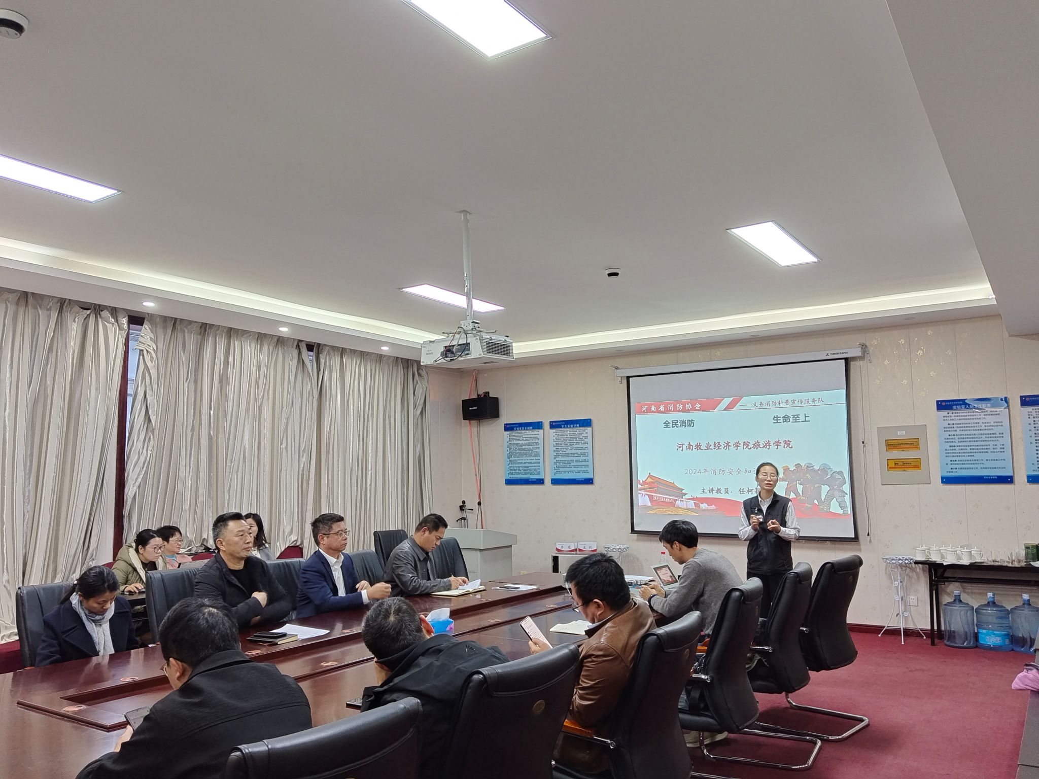 为深入学习贯彻习近平总书记关于安全生产系列重要论述精神和学校要求,进一步加强火灾防控宣传教育工作,不断提升我院教职员工的消防安全意识和火灾防控能力,2024年11月29日下午,开元集团网站特邀河南省消防协会义务消防科普宣传服务队任柯颖教员在二号楼C423会议室为开元官网带来消防安全培训讲座。本次消防培训会由院党委书记权太举主持,全院教师参加。