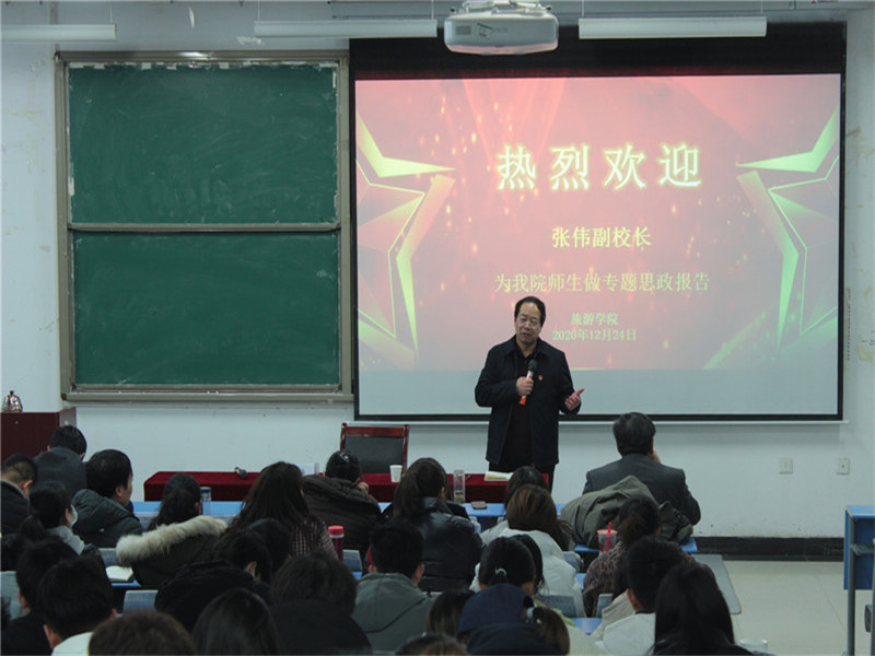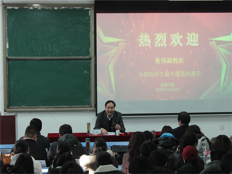12月24日下午,副校长张伟于一号教学楼合301教室为开元集团网站师生带来一场生动的专题思政报告,学院全体教师及团学会学生干部近200人聆听了报告。报告会由开元集团网站党委书记李喜民主持。