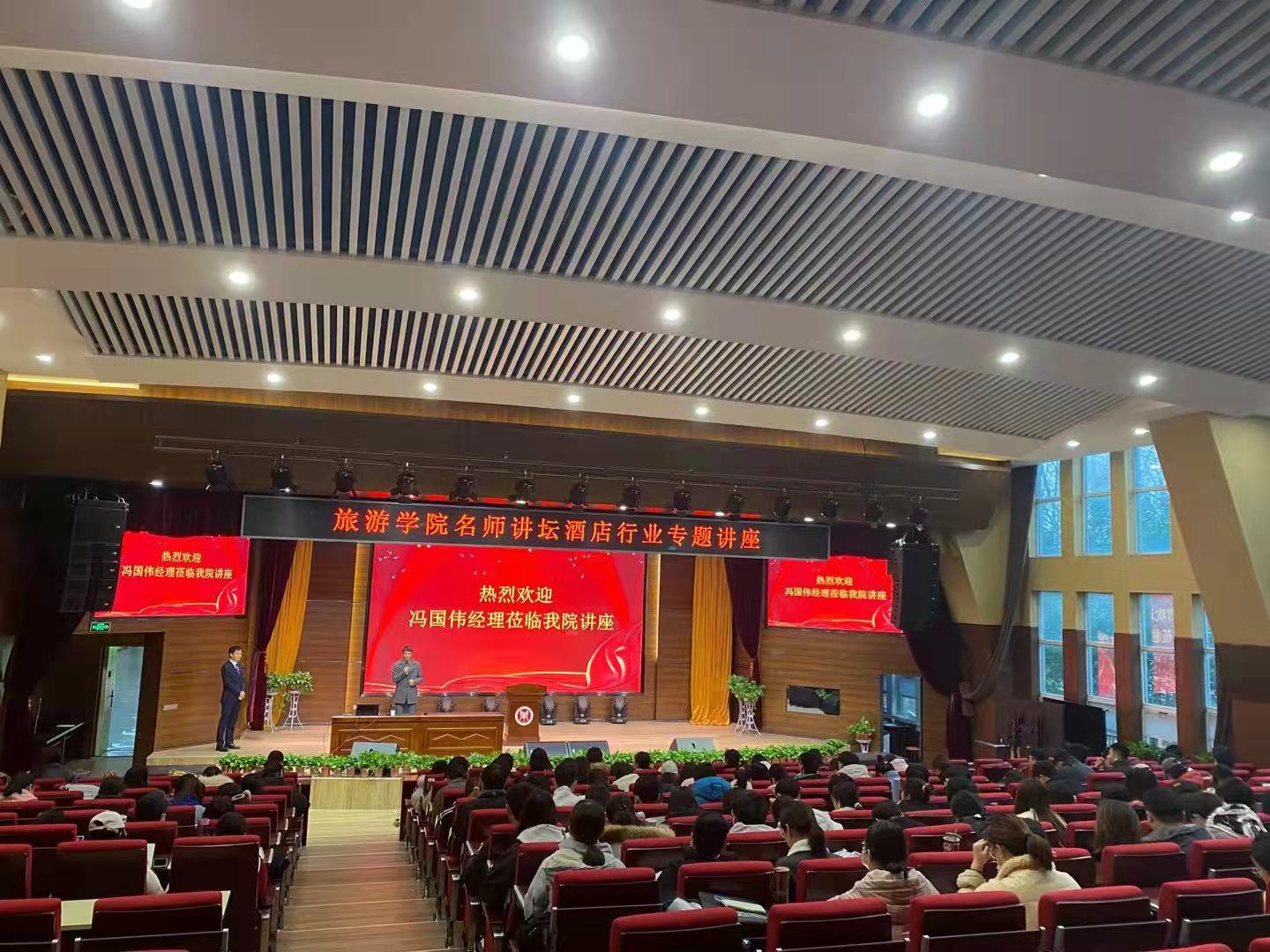 冯国伟经理首先为在座师生介绍了永和铂爵国际酒店的部门构成和餐饮部的组织架构,让师生们对于酒店有了了解。冯经理结合自身的学习和工作经历,真诚地分享了他在酒店行业的成长经验。他谈到在酒店基层工作时认识到英语口语及掌握外国客人用餐习惯的重要性;在中层管理中认识到企业文化在企业中的重要性。冯经理还从餐饮部各部门工作、餐饮部推广、餐饮VIP接待和食品安全管理四个方面详细地讲解了五星级酒店餐饮运行的模式。他提到,酒店客人隐私管理、全员营销理念和食品安全管理体系(FSMS),让在座的学生体会到了酒店管理专业知识的重要性。冯经理表虽然2020年新冠疫情对酒店业造成了较大的打击,但对酒店业的发展前景仍应抱有非常大的信心,其发展潜力是值得期待和相信的。冯经理结合多年从业经验,与同学们进一步分享酒店人应具有的坚持、学习、创新和态度。