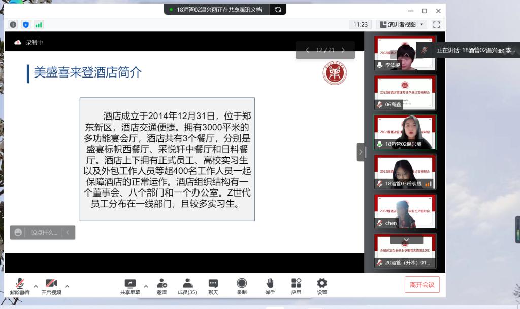 开元集团网站2022届酒店管理本科专业毕业论文答辩工作顺利完成