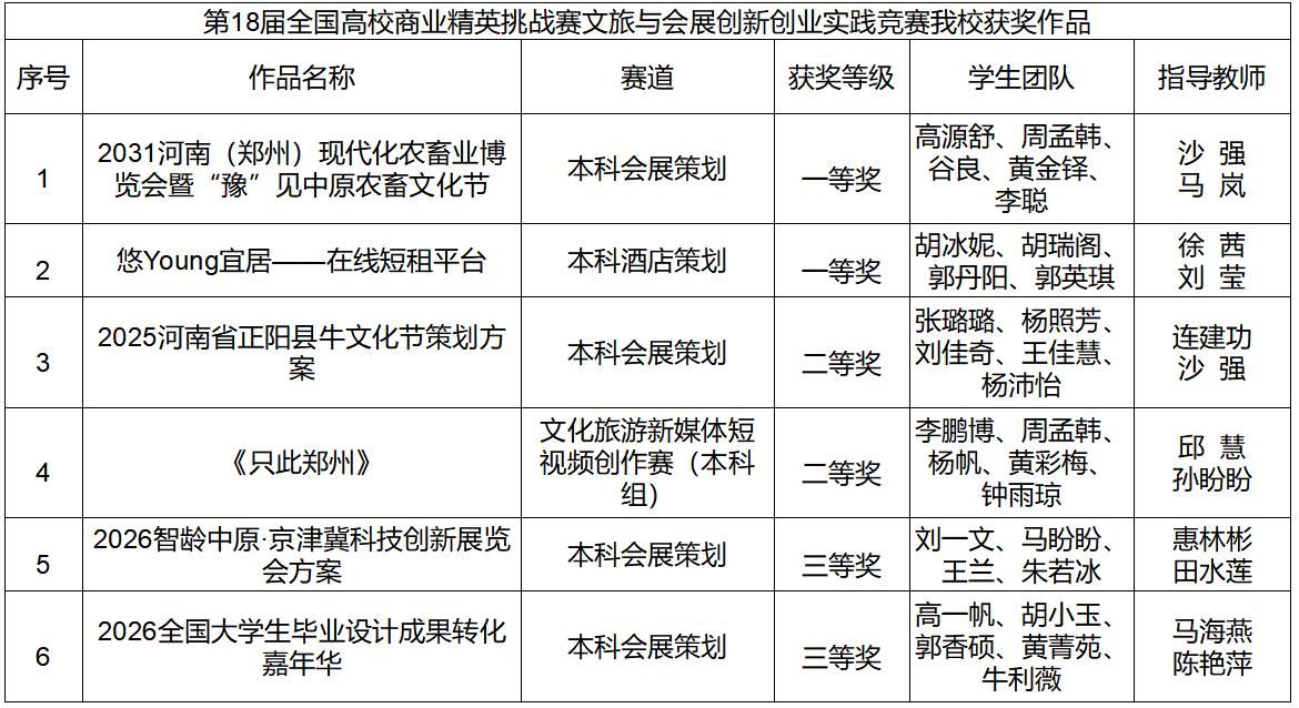 开元集团网站历来重视学科竞赛,不断拓宽赛事平台,在各类省级、国家级学科竞赛中取得优异成绩。未来开元集团网站将继续秉承“以赛促教、以赛促学、以赛促创”的教育理念,深化教学方法与手段的创新,强化实践育人工作,培养具备扎实专业知识、卓越实践技能、深厚科研素养和全面综合素质的文旅与会展行业领导者,以满足社会发展的需求,并在全球化的背景下展现国际视野和创新能力。(通讯员:沙强)