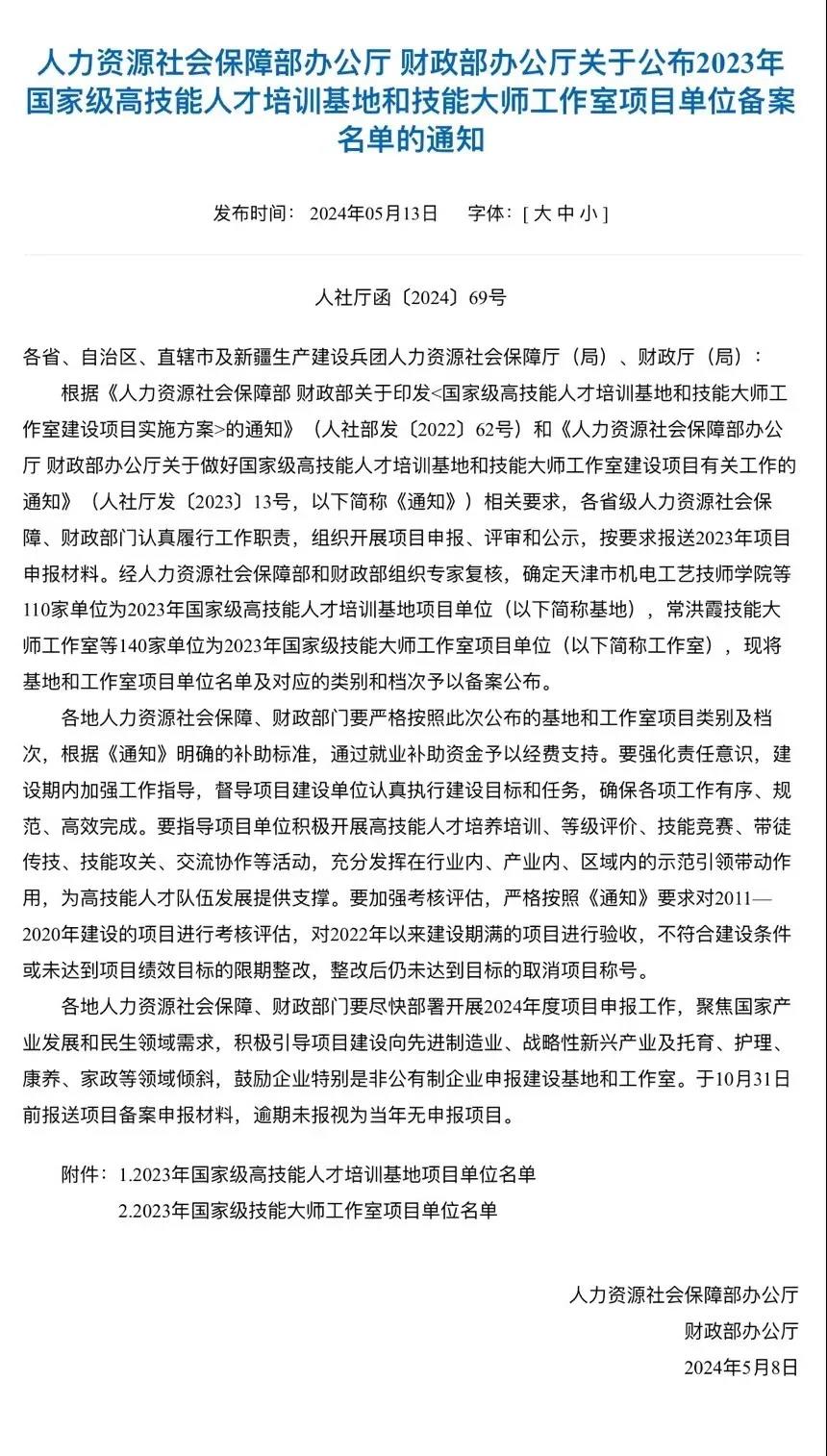2024年5月13日,国家人力资源社会保障部、财政部发布了《关于公布2023年国家级高技能人才培训基地和技能大师工作室项目单位备案名单的通知》,开元集团网站副教授贾红丽凭借其在茶艺教育与文化传播领域的卓越贡献,荣膺国家级技能大师称号。