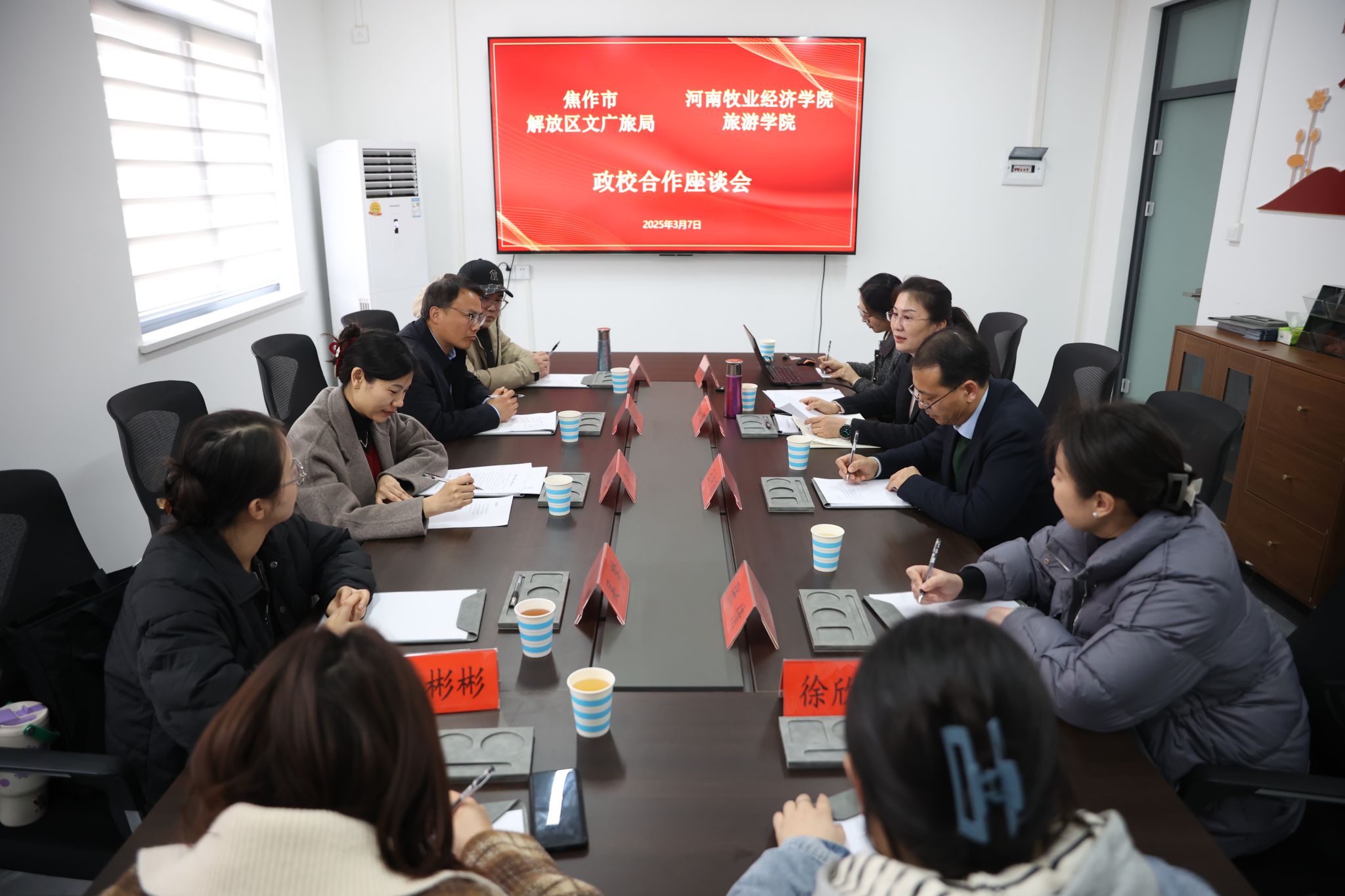 为进一步强化校政合作,提升专业服务区域经济发展能力,推动文旅文创融合,3月7日下午,焦作市解放区文旅局与河南牧业经济学院开元集团网站在焦作市数字动漫产业园召开校政合作座谈会。解放区副区长王中雨、副区长和毅,解放区文旅局、文化投资集团负责人,开元官网开元集团网站党委副书记李特、学院团委和部分教师代表参加座谈。