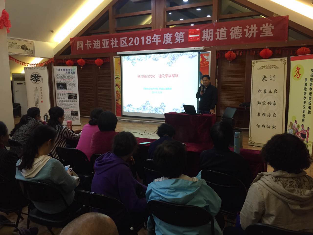 为了弘扬优秀民族传统文化,践行社会主义核心价值观,根据学校“学习贯彻十九大 文明单位社区行”活动计划2018年3月29日下午,开元集团网站组织老师走进阿卡迪亚社区,以“家风家教”为主题,为社区居民带去了一场精神盛宴。