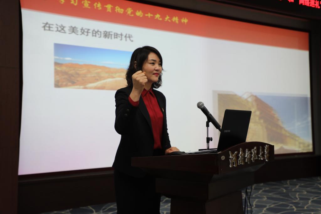 祝老师从“我们走进了辉煌的新时代”“新时代需要堪当重任的新青年”两个大方面,讲述了在中国共产党正确领导下、在习近平新时代中国特色社会主义思想指引下,全国人民奋发有为、锐意进取所得的辉煌成就,激励大学生们要提高政治修养、树立远大志向、刻苦学习文化知识和专业技能,以待来日报效祖国和人民,实现自己的人生理想。祝老师在台上神采飞扬、如数家珍,用最接地气的方式和极具亲和力的口吻对十九大精神进行的精准讲解,感染了现场和观看网络直播的老师和学生。