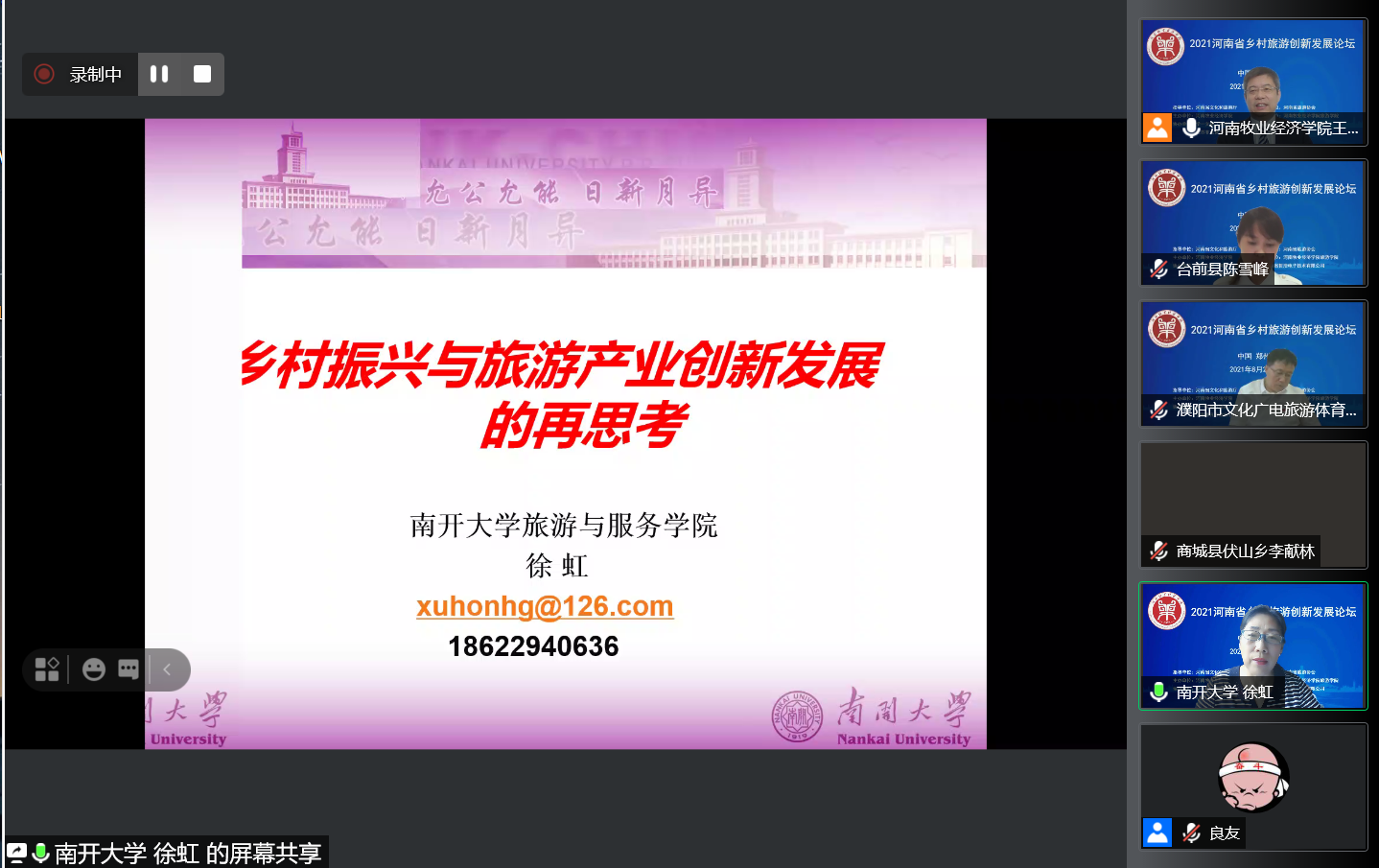 由开元官网主办、开元集团网站承办的2021河南省乡村旅游创新发展论坛于82日上午以腾讯会议线上直播方式举办。论坛以“乡村旅游:融合、创新与高质量发展”为主题,来自河南省文化和旅游厅、河南省旅游协会、河南省会展业商会、郑州市文化广电和旅游局、濮阳市文化广电旅游体育局、商城县文化广电和旅游局、南开大学、浙江大学、郑州大学、河南大学、河南财经政法大学、河南牧业经济学院等省内外60余家单位的近300位主管部门领导、行业专家、企业高管、高校教师和乡村旅游基层管理者,围绕乡村振兴、文旅融合、乡村旅游产业高质量发展、乡村旅游品牌建设等热点问题进行了深入的理论探讨,就乡村旅游中古村落保护、美丽乡村建设中的文化建设、高端精品民宿开发等实践问题进行了经验分享。