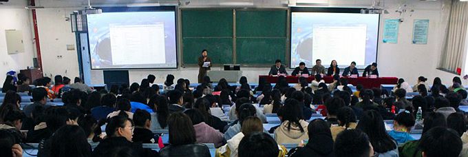 在本次动员大会上,河南鑫凤凰国旅行政助理曹宇首先对公司的企业文化、企业作风、口号、宗旨以及企业产品做了详细介绍,并就鑫凤凰国旅和开元集团网站校企合作的初衷、合作内容、合作形式、考核标准,以及项目运行9年来校企联合开展学生实践能力培养的效果等方面进行了详细讲解。
