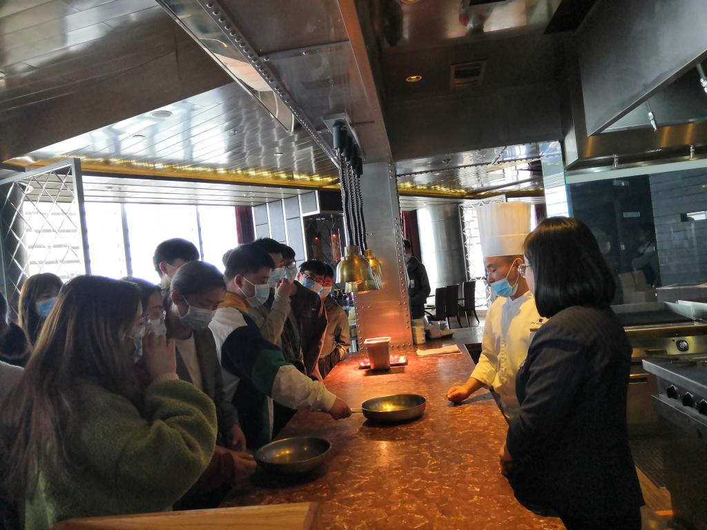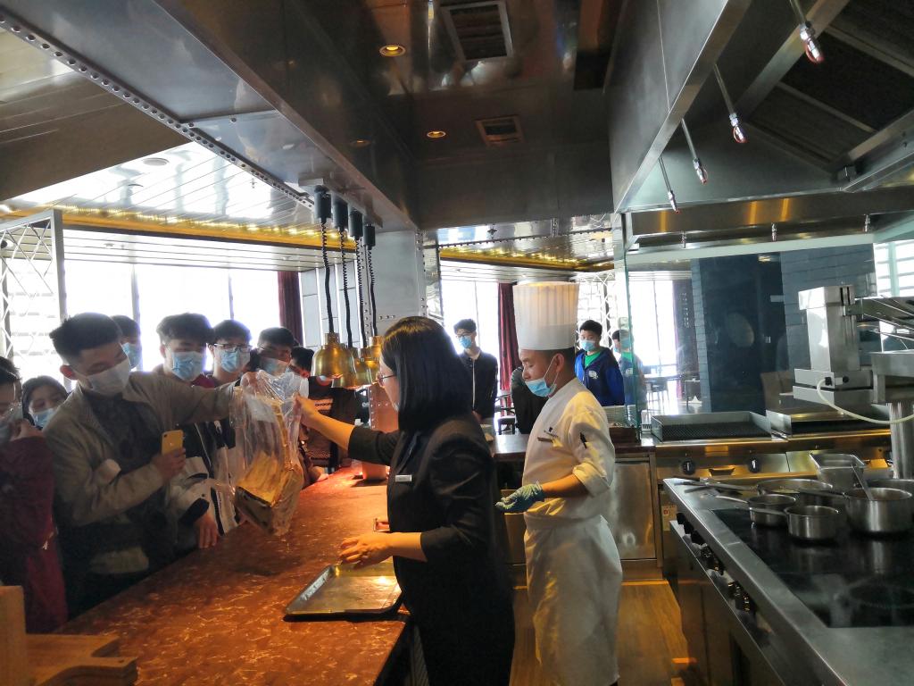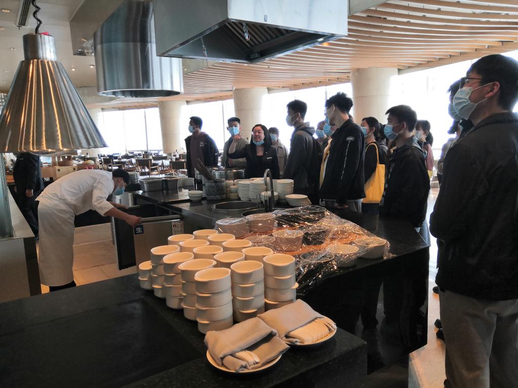 在JW万豪酒店的精心安排下,开元官网学生参观调研了酒店厨房及餐饮区域,酒店大厨向在场学生介绍了酒店厨房设施设备的使用,带领学生了解了酒店厨房的全套工作流程。参观后,酒店大厨就酒店厨房从业人员的基本情况和素质要求与开元官网学生展开了深入交流。