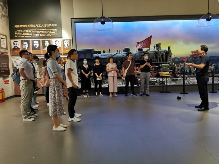 7日上午,教工一支部20多名党员来到位于郑州市二七区的中原英烈纪念馆,缅怀革命先烈,追寻烈士足迹,回顾革命历程,重温入党誓词,传承革命精神。支部成员、学院党委书记李喜民和正处级组织员黄琴作为普通党员全程参加了活动。