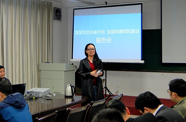 报告会上,吴莹老师、祝聪楠老师分别结合自身教育教学实际,讲述了生动的事例,分享了成功的经验,诠释了高尚的师德。吴莹老师讲到:“对学生负责、对自己负责,不断修正完善自己,保持责任感、畏惧感,努力把自己该做的事情做好,是多年来一直坚持的原则。每个人都做好自己,小河有水大河满,党员先进性就自然体现出来了”。祝聪楠老师指出“学生工作需要我们以奉献的精神,用心去创新性开展工作,才会有好的效果。要相信每个学生身上都有闪光点,要用心去发现、用心去沟通,知道学生需要的是什么,时刻准备好。做到了真实与真诚,就会受到学生的真心拥护和欢迎。