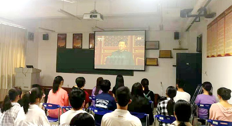 观看前,李喜民书记满怀激情地回顾了祖国70年来取得的成绩,勉励师生不忘初心、牢记使命,为祖国发展做出应有的贡献。李书记情到深处,赋诗一首,以抒爱国情怀。